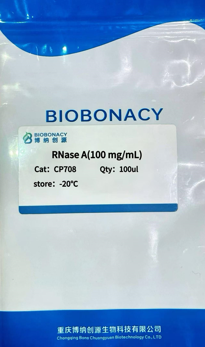 核糖核酸酶 A(Ribonuclease A),简称 RNase A,来源于牛胰,是一种核糖核酸内切酶,可特异 性切割单链 RNA 的 C 及 U 的残基部位,降解 RNA。本产品可用于基因组 DNA 提取、质粒提取、蛋 白纯化等实验过程中 RNA 的降解,且不影响本身实验结果。