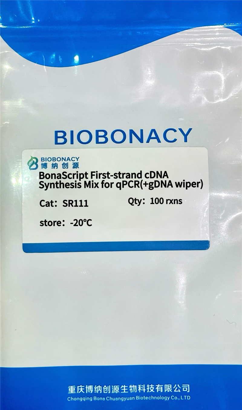 本产品是一款高效、便捷的第一链 cDNA 合成试剂,BonaScript First-strand cDNA Synthesis Mix 中包含 BonaScript Reverse Transcriptase 及其反应 Buffer、Rnasin、dNTPs、Oligo(dT)20VN 和 随机引物等第一链 cDNA 合成所需的所有组分,仅需加入 RNA 模板和水即可进行逆转录反应。